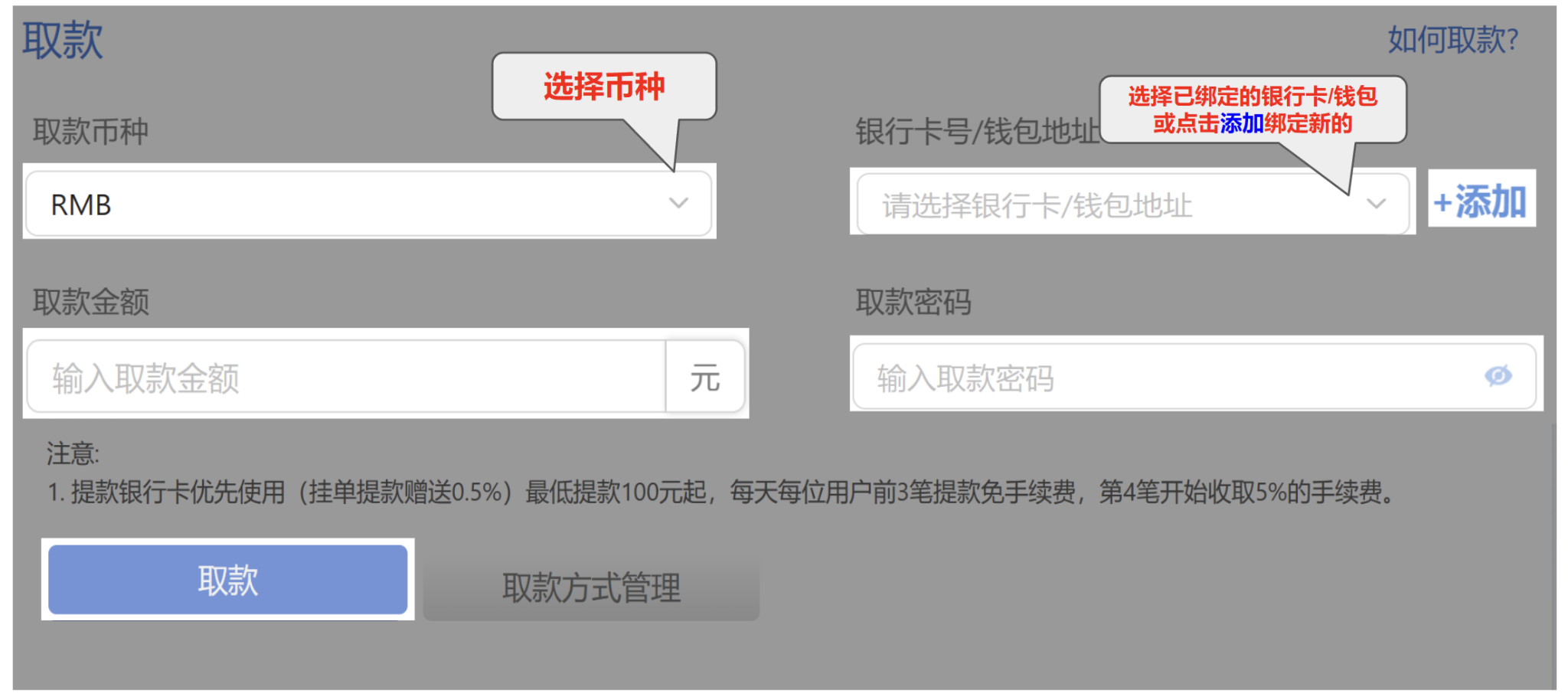 平台每位用户,每日都有前3笔免提款手续费的优惠,提款第4笔开始每笔收取提款金额的5%手续费。